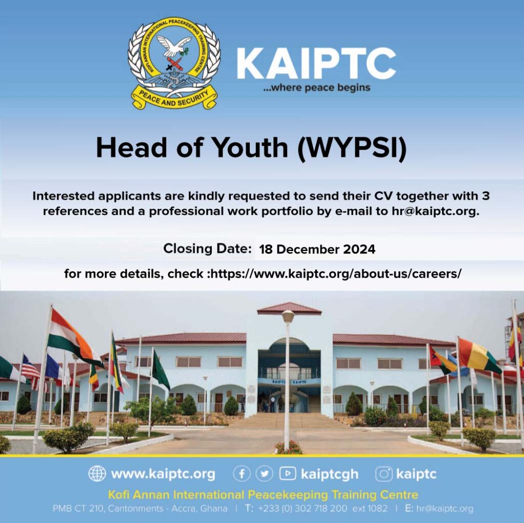 Job Title: Head of YouthDepartment: Women, Youth, Peace and Security Institute (WYPSI)Reports to: Director / Deputy DirectorSupervises: Senior Programme Officers, Programme Officers and Programme Assistants JOB PURPOSEThe Women, Youth, Peace and Security Institute’s (WYPSI) mission is to accelerate the full implementation of the Women, Peace, and Security (WPS) and Youth, Peace, and Security (YPS) agenda across […]