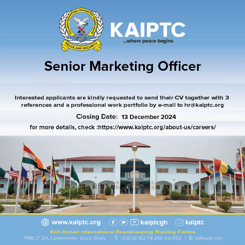 Job Purpose To support and coordinate the implementation of marketing strategies that enhance KAIPTC’s visibility and attract funding, sponsors, and collaborative partners. The role focuses on executing campaigns and initiatives to drive participation in training and academic programmes and explore non-traditional funding sources. Key Responsibilities Marketing Campaigns: Funding and Sponsorships: Partnership Development: Content Development: Target […]